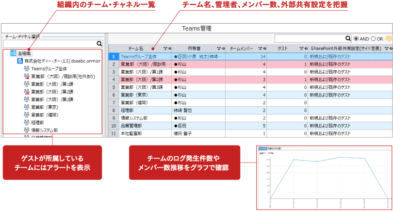 いま、組織においてどれほどチームが作成されていて、それらが活用されているのか/いないのか。そして社外ユーザーはどれぐらい参加しているのかといった全体像を把握できていないと、こういった思わぬトラブルや弊害を引き起こしてしまう可能性もあるのです。